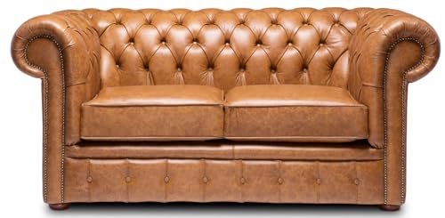 Chesterfield Plus Two Seater Sofa Bed Italian Tan Leather | Handcrafted In The UK | Deep Button Tufted Design | Rolled Arms | Classic Pull Out Guest Bed