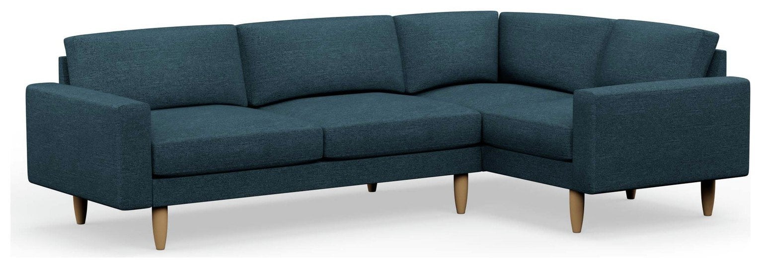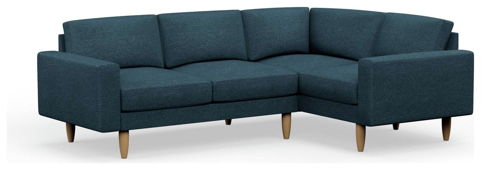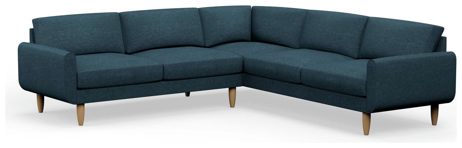 Hutch Fabric Block Arm 4 Seater Corner Sofa - Aegean Blue