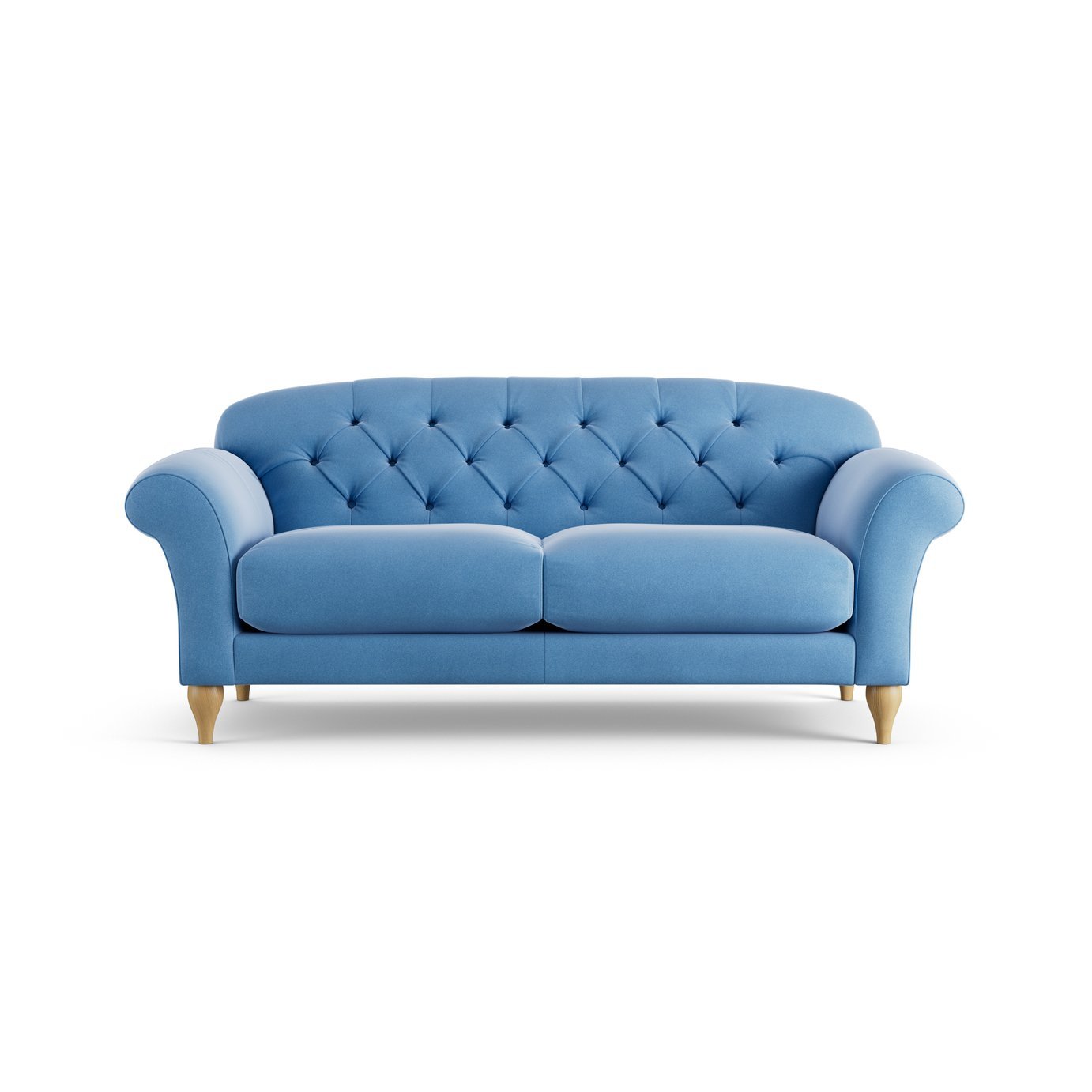 Hutch Fabric Round Arm 3 Seater Sofa - Aegean Blue