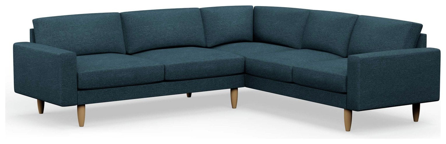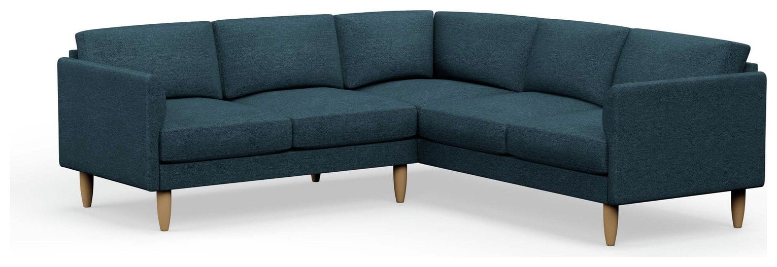 Hutch Slim Fabric Block Arm 5 Seater Corner Sofa-Aegean Blue