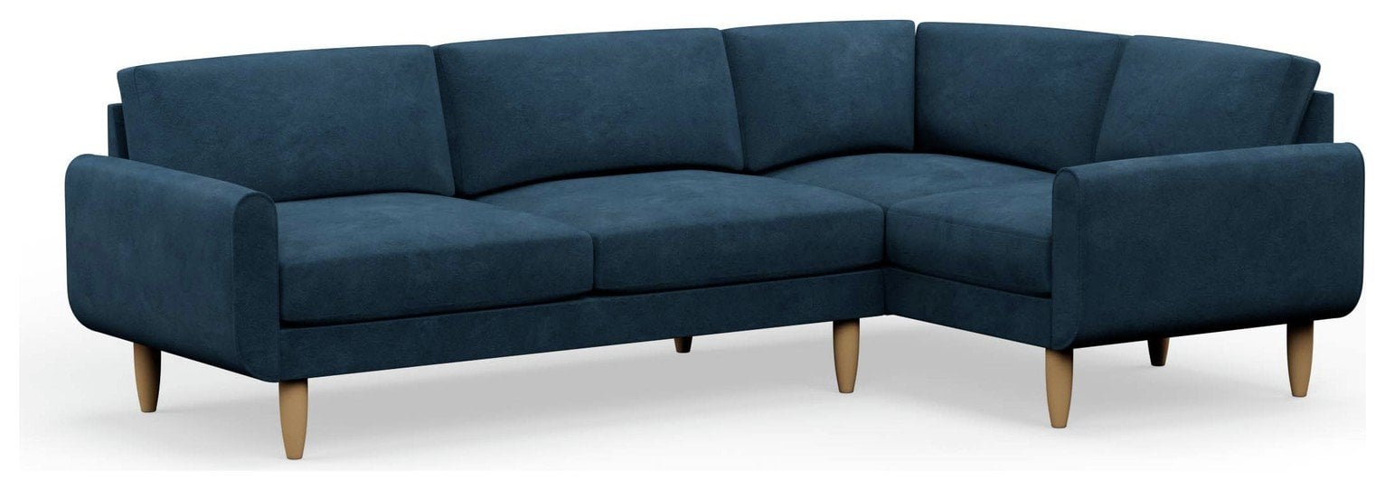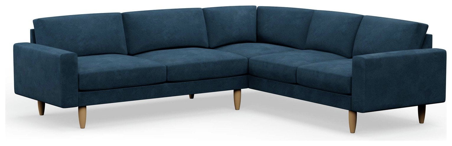 Hutch Slim Velvet Block Arm 5 Seater Corner Sofa - Ink Blue