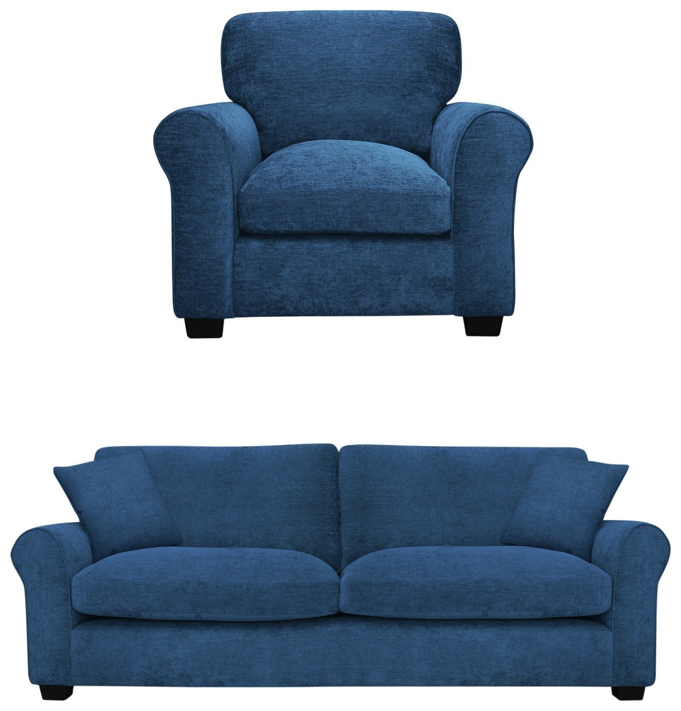 Argos Home Taylor Fabric Chair & 3 Seater Sofa - Blue