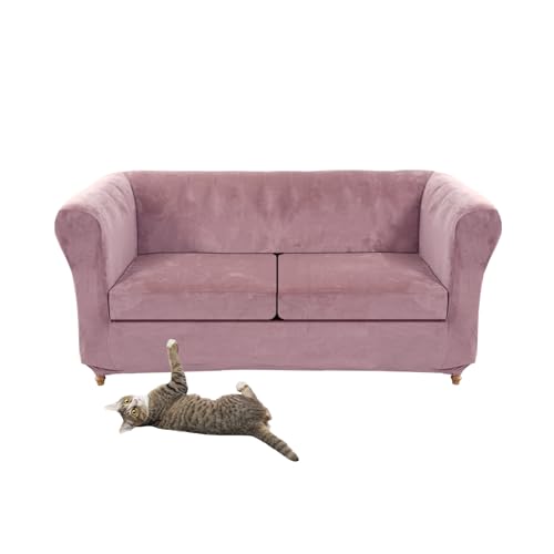SYLC Stretch Velvet Chesterfield Sofa Cover, Couch Cover with Seat Cushion for Curved Settee Armchair Vintage Style (Pink, Sofa+2 Large Seats)