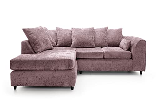 Abakus Direct Harriet Corner Sofa - Pink Crushed Chenille - L Shaped Couch Unit for Living Room - Range Includes 2 Seater, 3 Seater, U-Shaped Sofa & Footstool Options - Corner Left
