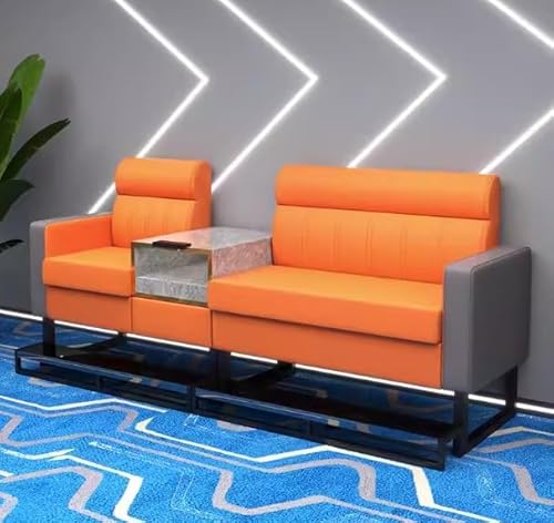 KIBONCY Nordic Style Commercial Sofa Set with Table and Chairs - for Sales Office, Beauty Salon, Hotel Lobby, Office Reception Area(Orange set5)