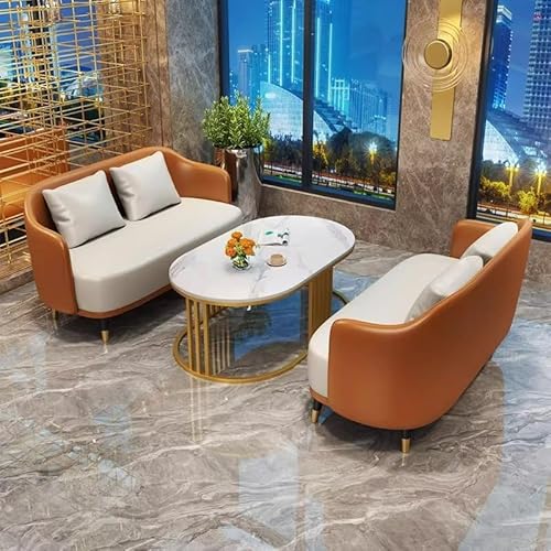 KIBONCY Luxury Light Commercial Leather Sofa Set with Table and Chairs - 5 Combinations for Tea House, Café, Restaurant, Lounge Area(Orange,2 seater)