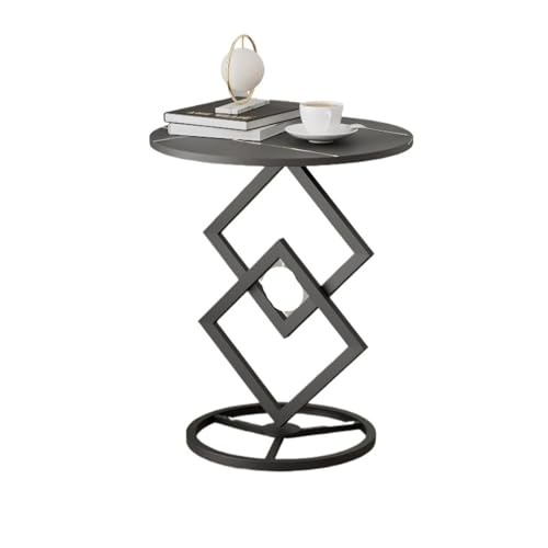 Side Table Living Room Creative Simple End Table Light Round Rock Plate Coffee Table Modern Small Household Living Room Metal Small Sofa(Black Gray)