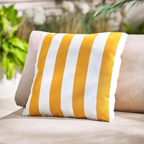 Furniturebox UK Garden Accessories, 2x and Cream Stripe Outdoor Cushions (pair) 43x43cm – Splash‑Proof Scatter Pillows for Patio Chairs and Sofas – Decorative and Durable Polyester, Yellow