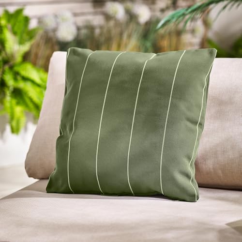 Furniturebox UK Garden Accessories, 2x and Cream Stripe Outdoor Cushions (pair) 43x43cm – Splash‑Proof Scatter Pillows for Patio Chairs and Sofas – Decorative and Durable Polyester, Green