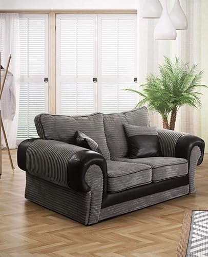 Grey Fabric & Black Faux Leather 3+2 Corner Armchair Seater Sofa Set | Modern High Back Cushioned Sofas | Deep Seat Comfort Living Room Suite | UK Home (2 Seater)