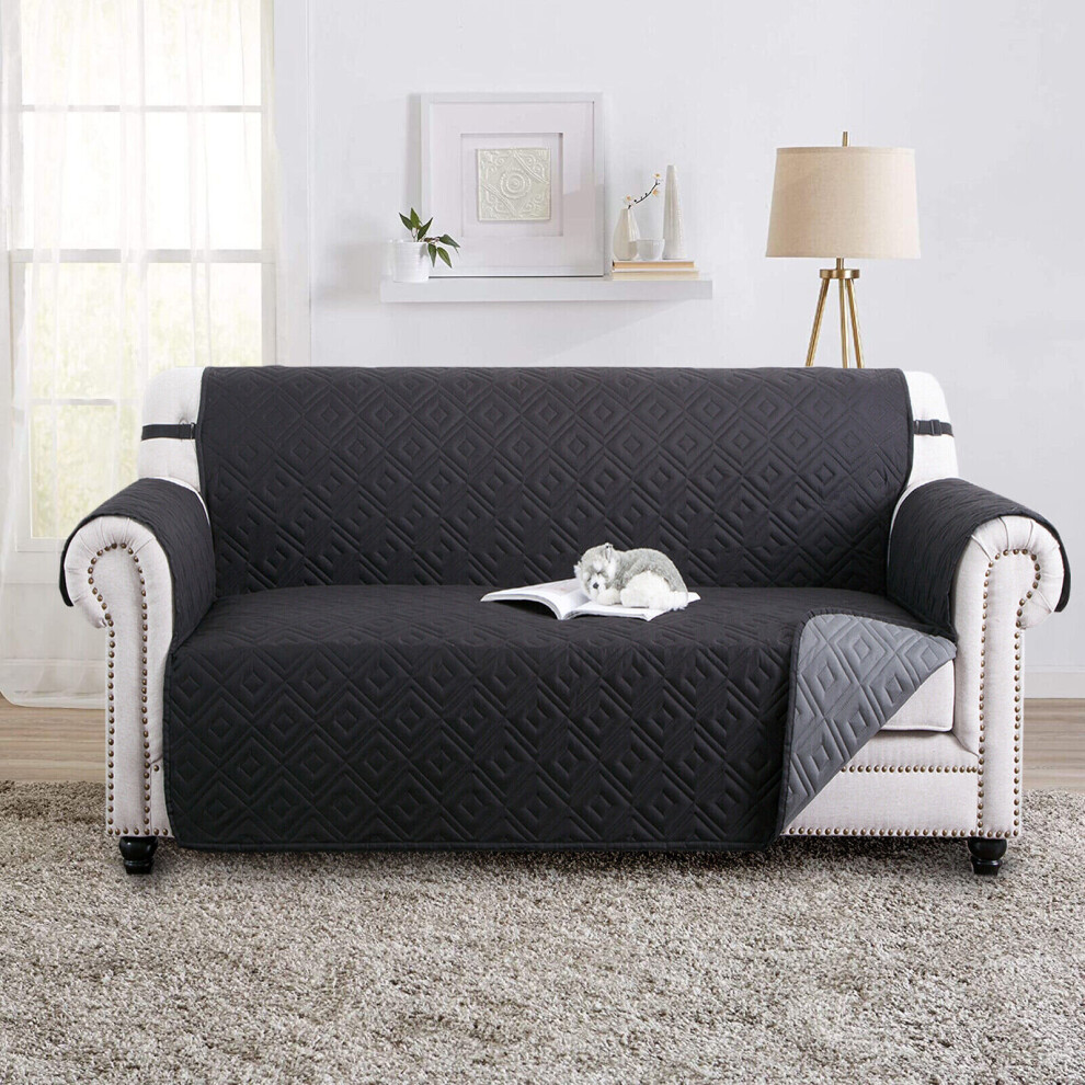 (BLACK-DARK GREY-3 SEATER) Furniture Covers For Sofas 3-Seater Couch Cover UK