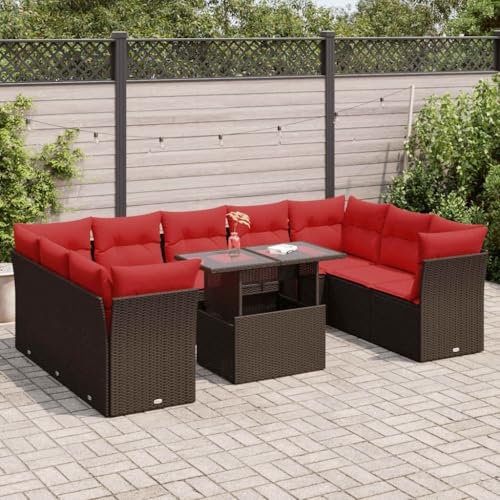 Tonture 10-Piece Garden Sofa Set, Brown Poly Rattan Acacia, Corner & Middle Sofas with Storage Space, UV-Resistant, for Patio & Balcony