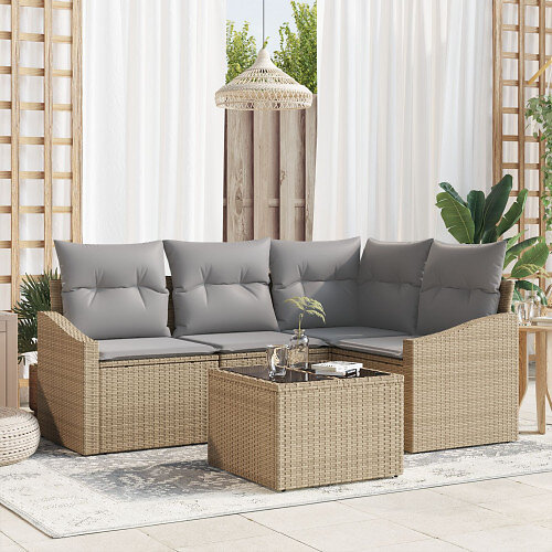 vidaXL Garden sofa set with storage 6 pcs Beige Poly rattan