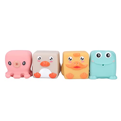 Gucagle Soft Stacking Building Blocks Cute Cartoon Animal Shaped Teething Squeeze Sensory Blocks Toy for Babies Toddlers 6M+ PVC Material 4PCS