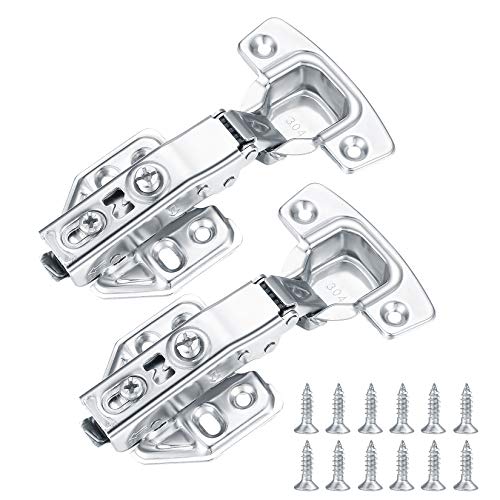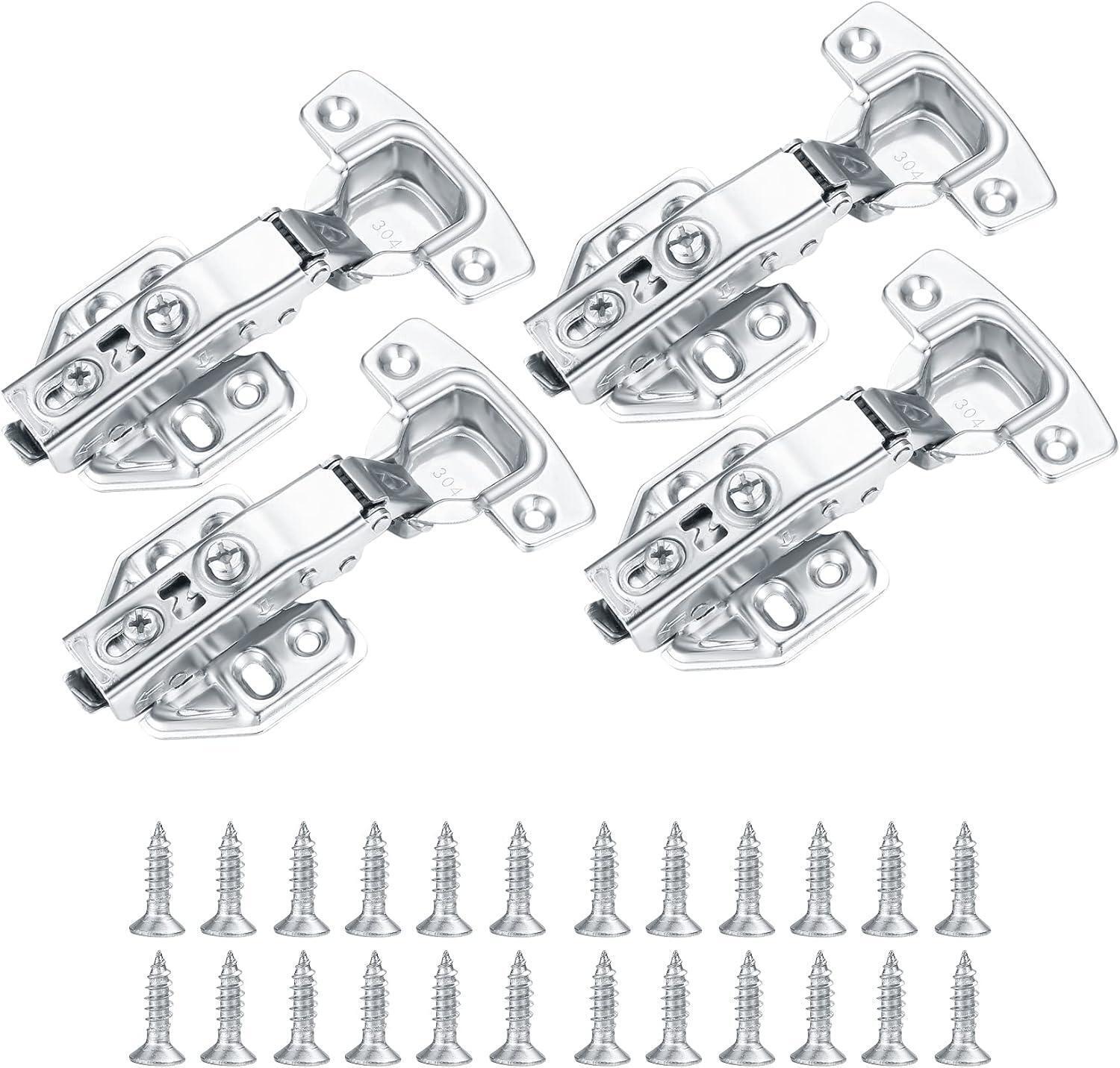 4 Pcs Soft Close Cupboard Hinges 35mm Kitchen Cabinet Wardrobe Door Plate Hinges 105 Degree Stainless Steel Concealed Inset Hinges with Screws and