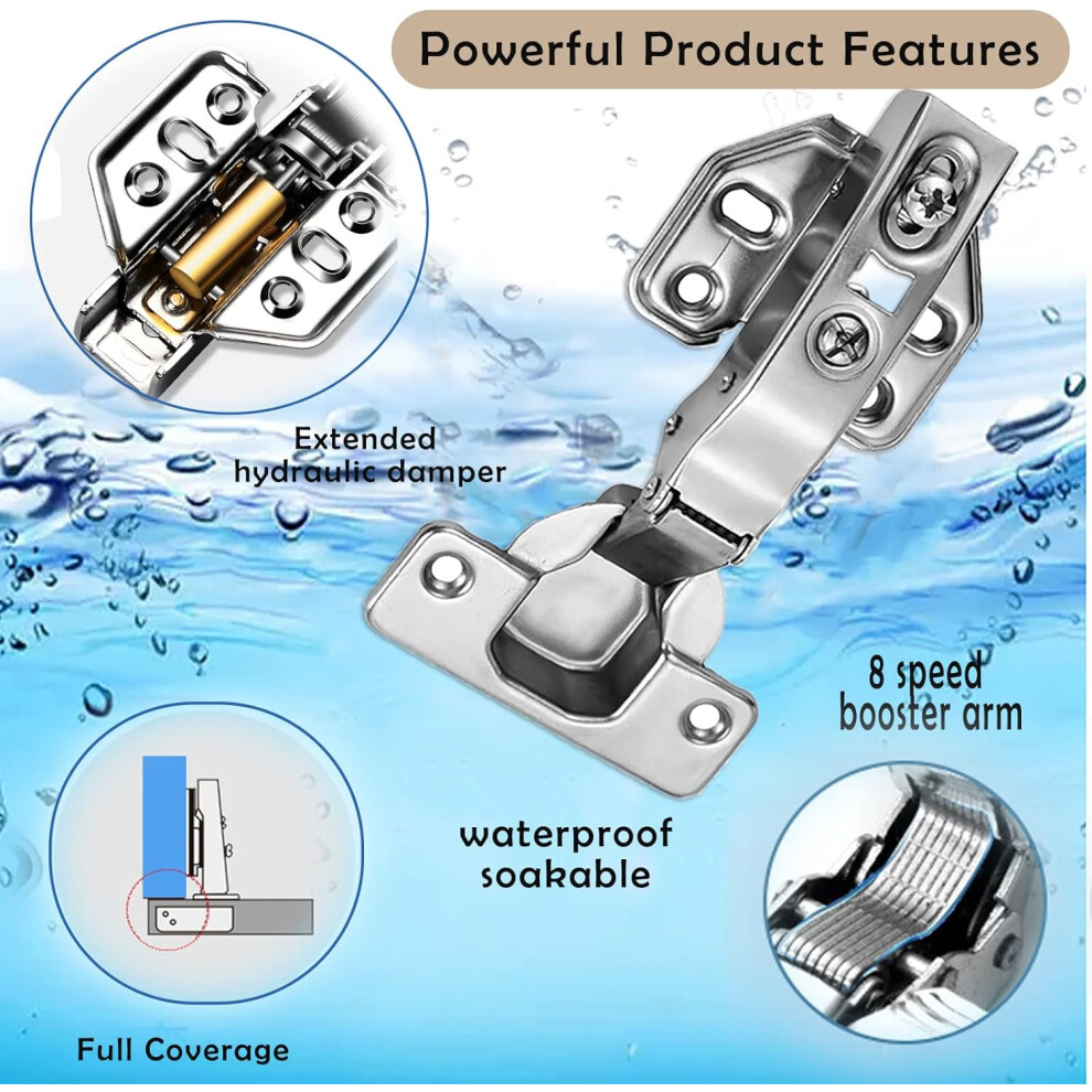 Full Overlay Cabinet Hinges for Kitchen Cupboard, Adjustable Mute Hydraulic Hinges with High-Quality Material, Soft Close Concealed Cupboard Hinges Fe