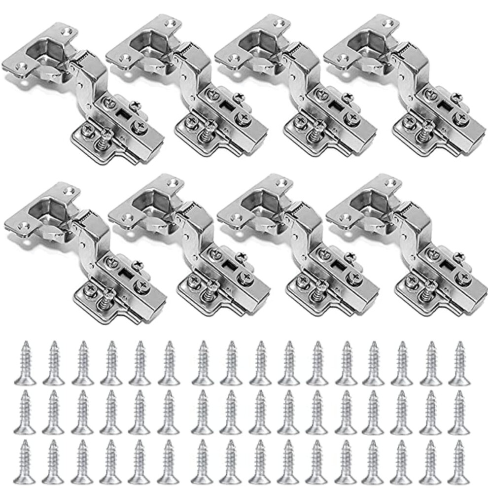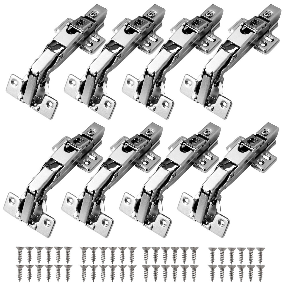 Kamtop 8 Pack Kitchen Cabinet Hinges, 165 Degree Full Overlay Quiet Soft Close Cupboard Hinges Kit, 35mm Hydraulic Wardrobe Units Door Hinges Concealed Dampers for Furniture Repair with Screws
