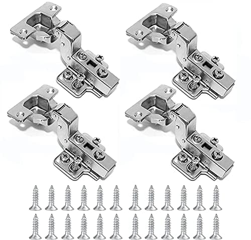 4 Pcs Soft Close Hinges, Kitchen Cupboard Hinges,110 Degree Full Overlay Mute Cabinet Hinges, Recessed Hinges with Dampers,with 24 Screws