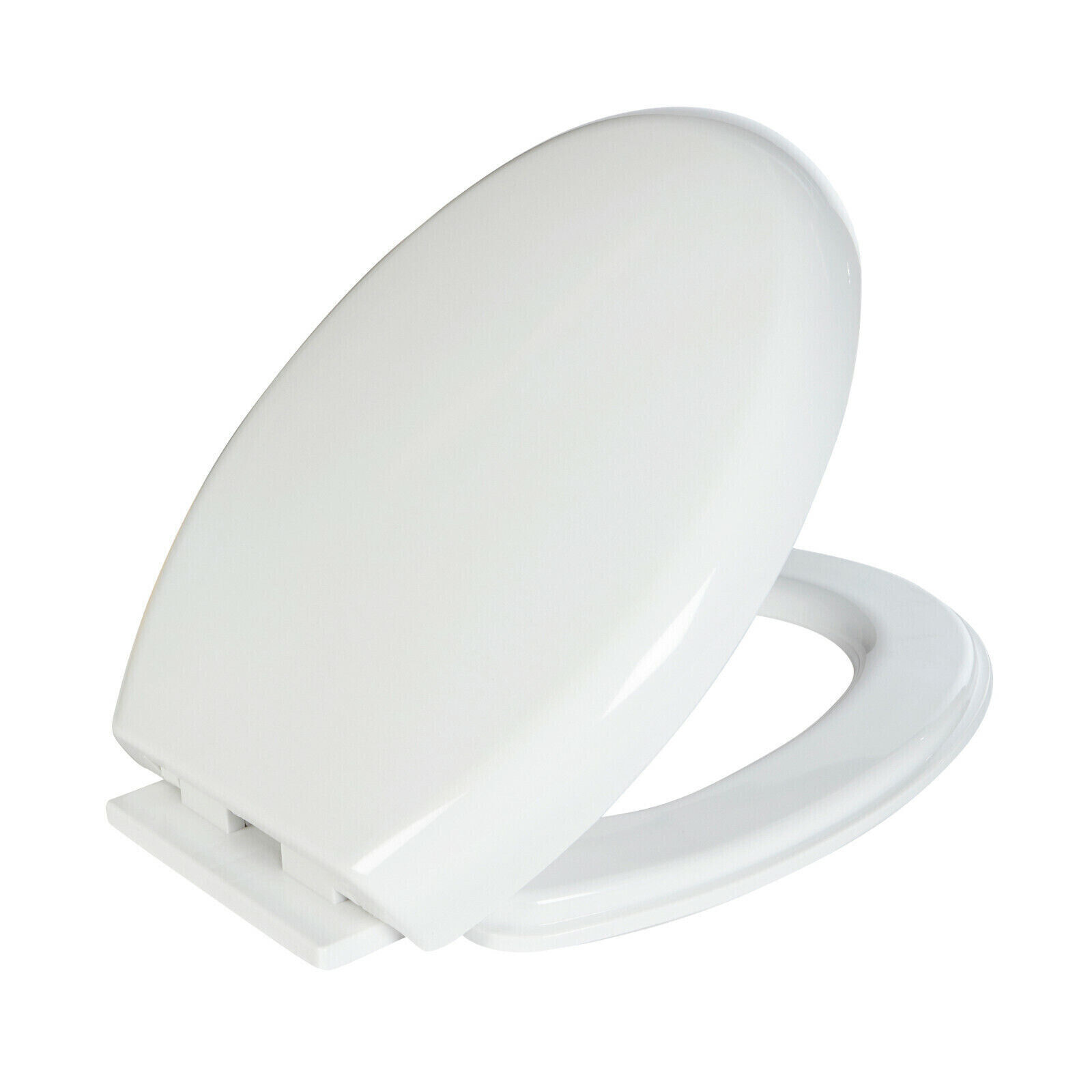 D-Shaped Soft Closing White Toilet Seat Quick Release Heavy Duty Top/Bottom Fix