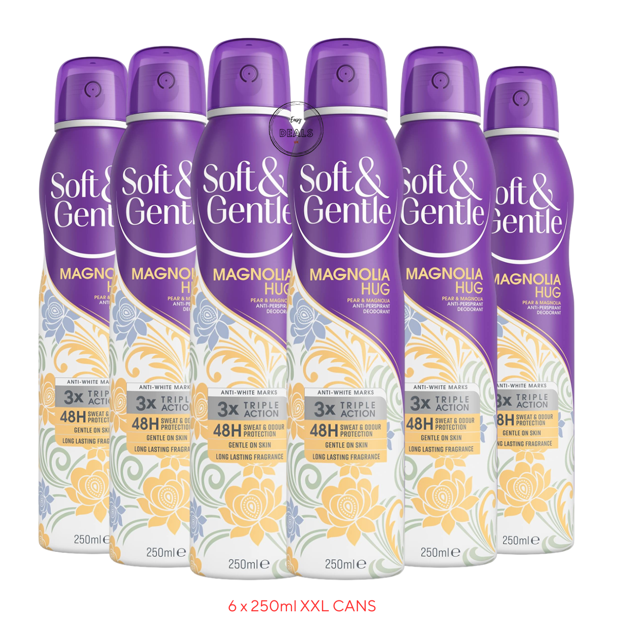 6 x 250ml Soft & Gentle MAGNOLIA HUG PAnti-Perspirant Deodorant Body spray