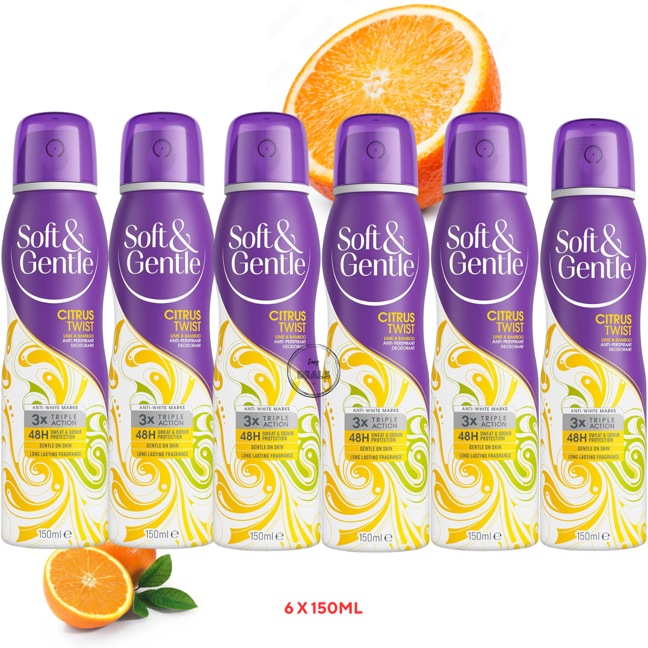 6x 150ml Soft & Gentle Citrus Twist Lime, Bamboo Anti-Perspirant Deodorant spray