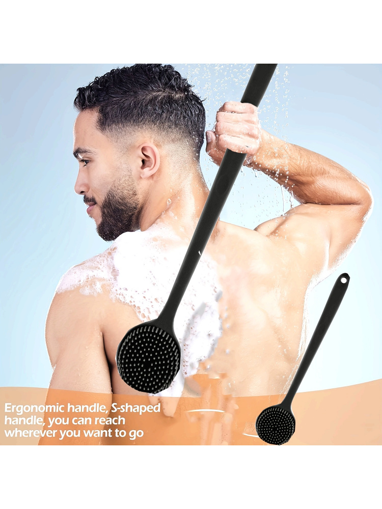 Long Handle Silicone Bath Brush with Soft Bristles - Ergonomic Back Scrubber for Exfoliating & Massaging, Gentle on All Light