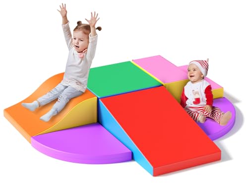 Wisbecost Soft Play Set,Baby Foam Climbing Blocks for Toddlers,Toddler Soft Play Equipment,Indoor Climb and Crawl Activity Play Set (6 pieces - colorful)