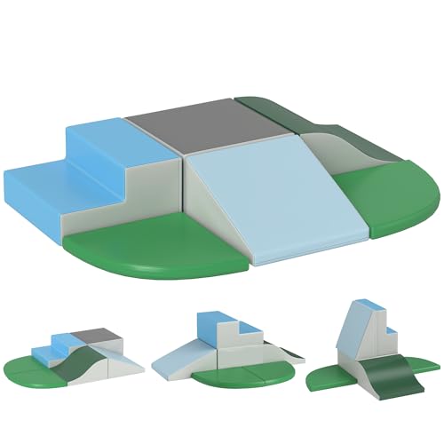 HOMCOM Soft Play Set, 7 Piece Foam Blocks, Toddler Climb and Crawl Activity Set for 1–3 Years, Soft Play Equipment for Building and Stacking, Learning Toy, Blue