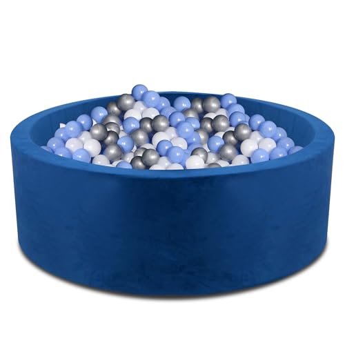 Little Nation Foam Ball Pit Deluxe – 90 cm Round Ball Pit for Baby & Toddlers, Soft Play Set & Baby Playpen with Removable Microsuede Cover, Machine Washable (Blue)