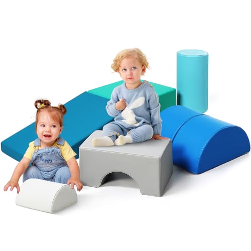 Wisbecost Soft Play Set,Baby Foam Climbing Blocks for Toddlers,Toddler Soft Play Equipment,Indoor Climb and Crawl Activity Play Set (6 pieces - light blue)