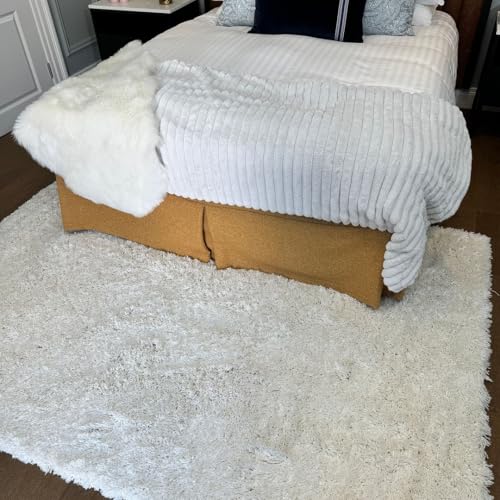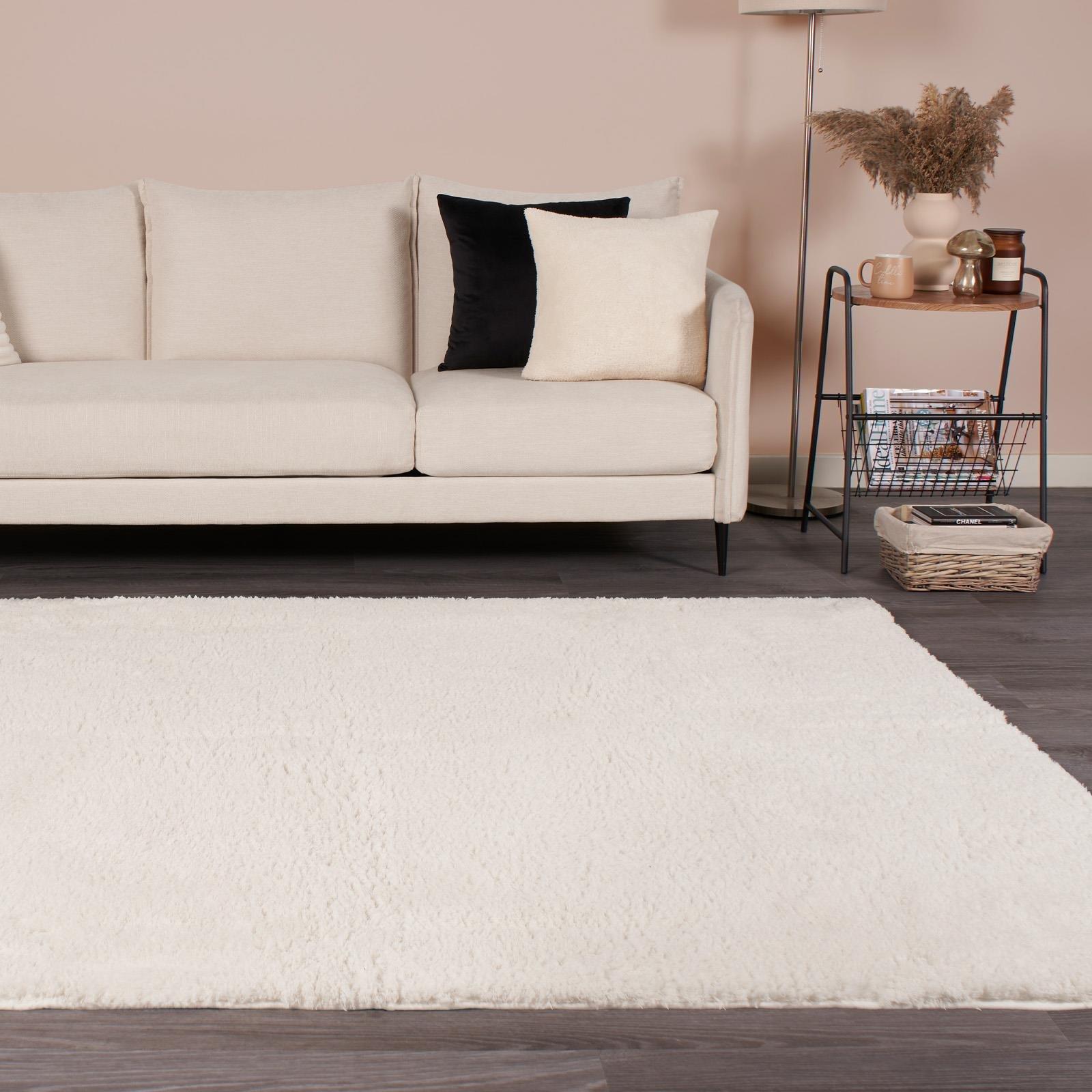 Shaggy Cream Soft Insulating Rug High Pile Thick Solid Colour Warm Touch Living Area Bedroom Rugs 120cm x 170cm (3ft 11" x 5ft 7")