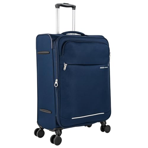JASLEN - Soft Suitcase Medium Size - EVA Polyester Medium Suitcase 65cm Soft Suitcase with Wheels - Lightweight 20kg Suitcase with Zippered Compartment - Lightweight and Resistant Travel Medium, Navy