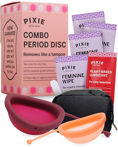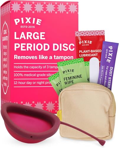 Pixie Menstrual Disc - No Metals or Toxins - 100% Medical-Grade Silicone - Ranked 1 for Most Soft Reusable Period Disc - Removes Like a Tampon - Wear 12 Hours - Capacity of 7 Tampons (Large)