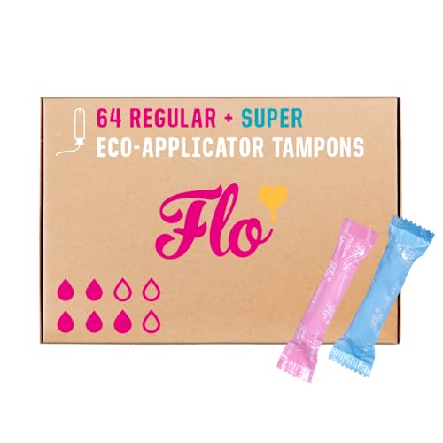 Flo Organic Cotton Applicator Tampons – Super Absorbent, Soft, Smooth Applicator - Combo Pack 36 Regular & 28 Super Tampons