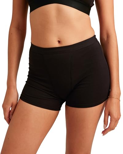 saalt Cotton Sleep Shorts - Leakproof Period Underwear - Period Underwear Shorts - Made of Soft, Breathable Cotton - Super Absorbency - Replaces 7 Pads or 10 Tampons - size S, Black
