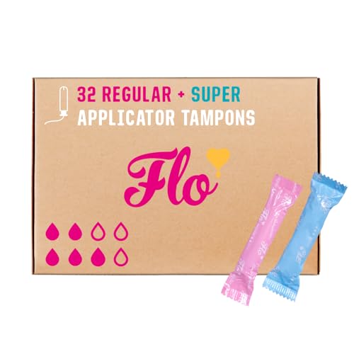 Flo Organic Cotton Applicator Regular Tampons – Absorbent, Soft, Smooth Applicator – Regular Flow – 32 Count