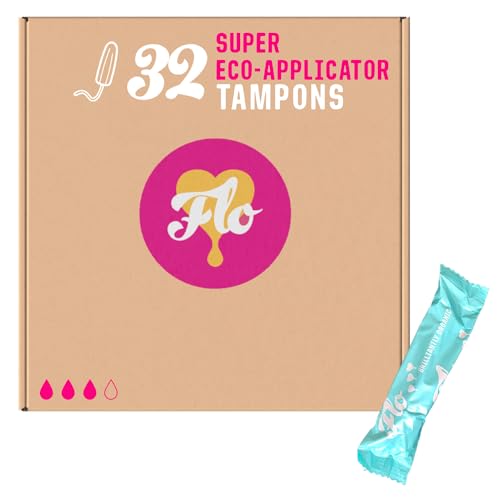 Flo Organic Cotton Applicator Super Tampons – Absorbent, Soft, Smooth Applicator – Super Flow – 32 Count
