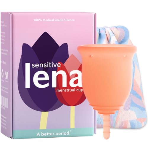 Lena Sensitive Menstrual Cup, Reusable Soft Period Cup, Tampons,Period Underwear and Menstrual Pads Alternative, Feminine Care, Silicone Menstrual Cups, Made in USA, Super Heavy Flow, Large, Coral