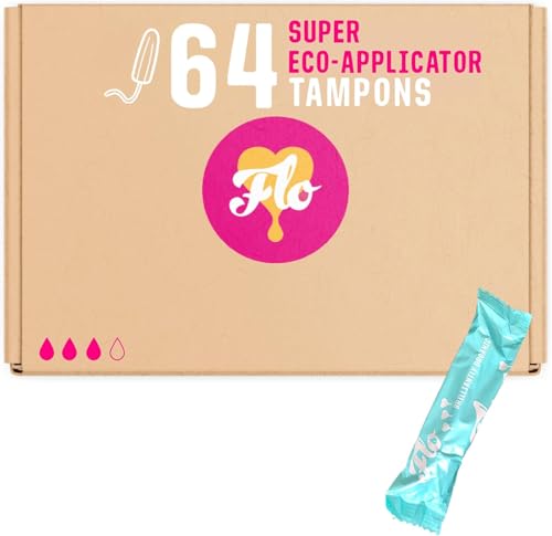 Flo Organic Cotton Applicator Super Tampons – Absorbent, Soft, Smooth Applicator – 64 Count Bulk Pack
