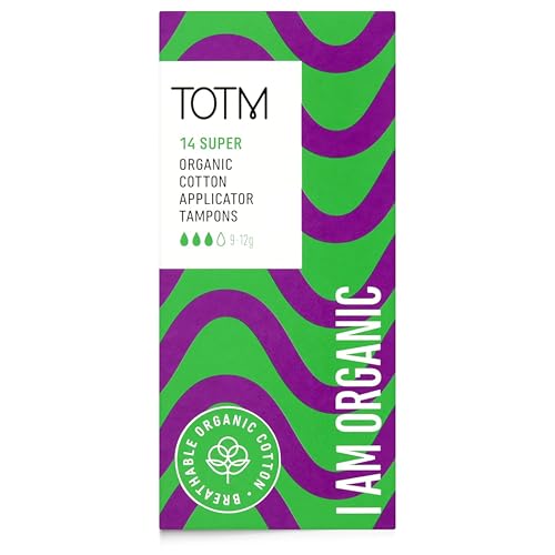 TOTM Organic Cotton Tampons with Biodegradable Cardboard Applicator | Super Absorbency Pack of 14 | Made from Cotton | Soft & Sustainable Natural Tampons for Leak-Free Comfort
