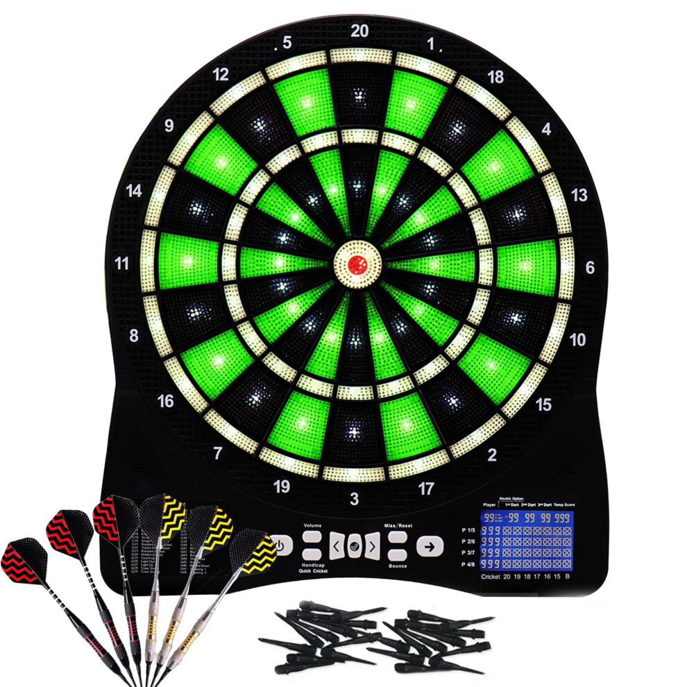 Electronic Dart Board Set 13Inch Illuminated Soft Tip Dartboard With 6 Darts Durable Segments For Pro Play Green