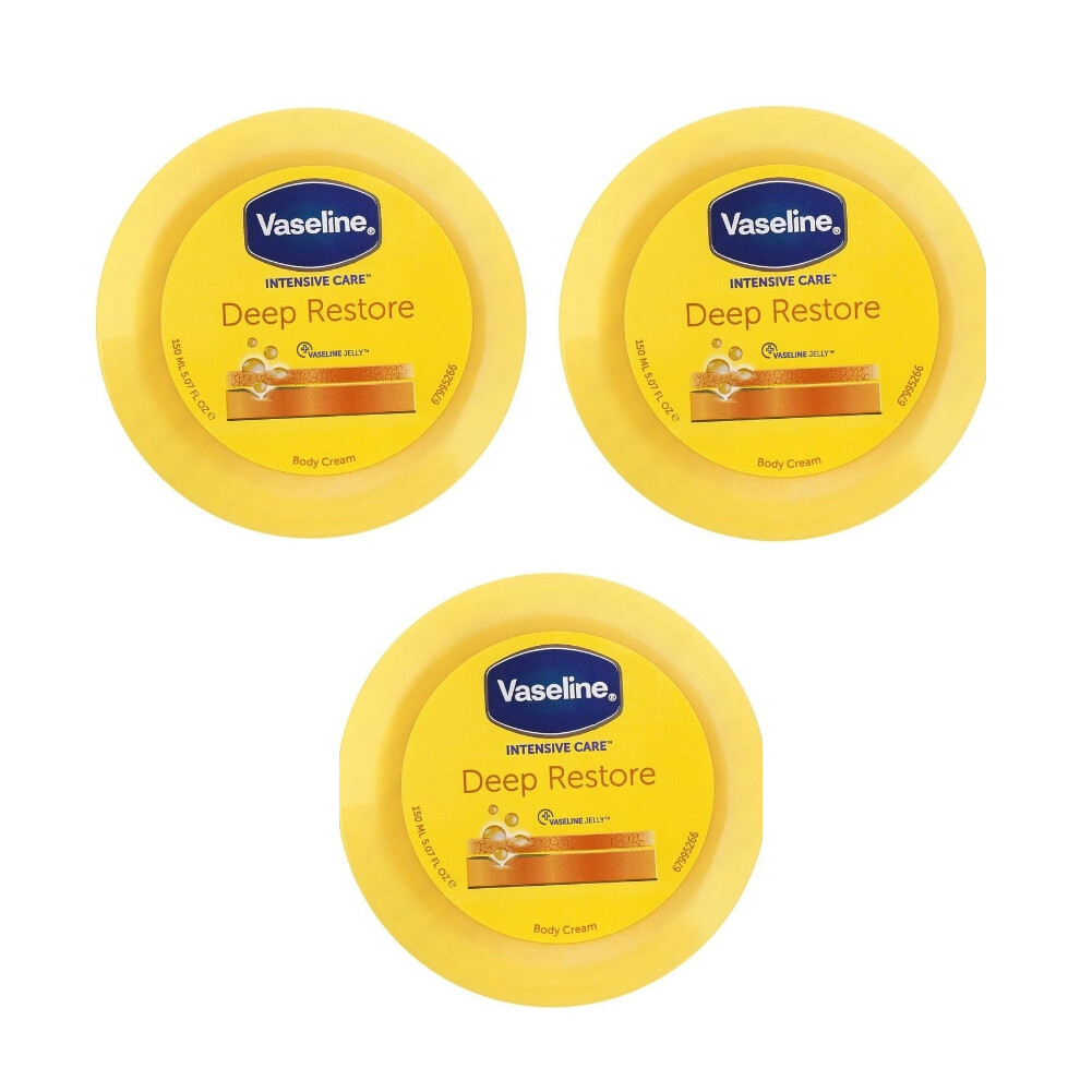 Vaseline Intensive Care Deep Restore Body Cream| Helps restore softness and smooth texture - 3 x 150ml
