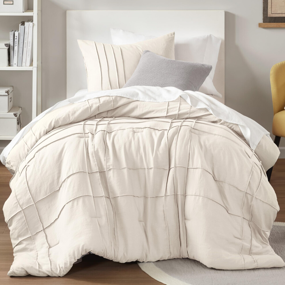 Comfort Spaces Cream Twin Size Comforter Set - 2 Pieces Pintuck Pleated Bedding Sets All Season Lightweight Extra Softness Pre-Washed Microfiber Bed