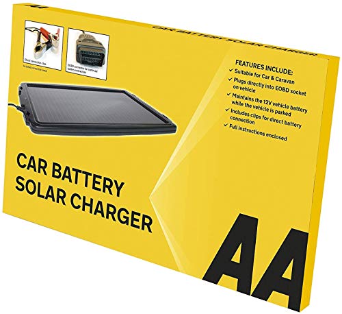 AA 5060114614185 Solar-Powered Car Battery Charger, Black, Mz0614762