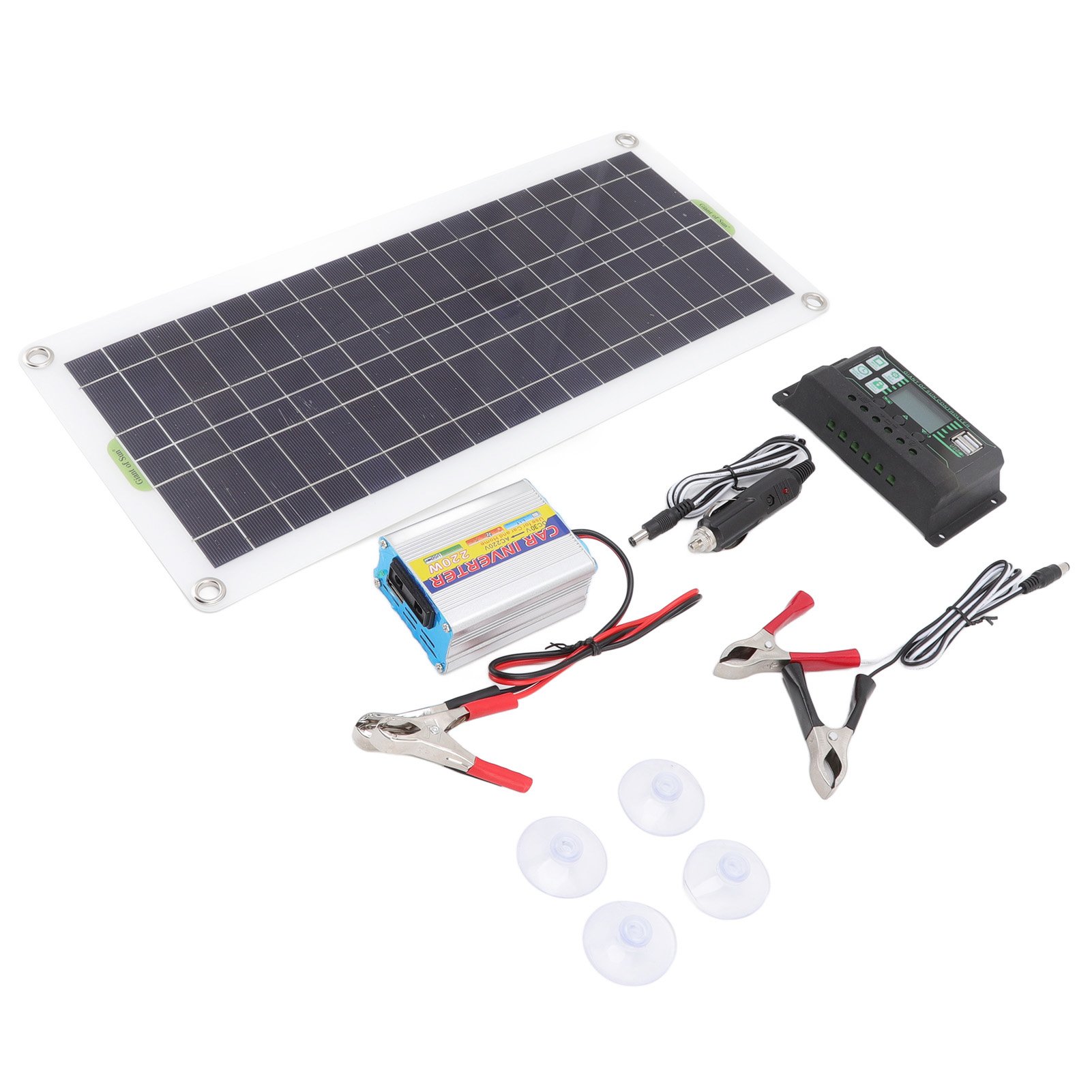 12V To 220V 30W Solar Charging Panel 220W Solar Inverter Battery Charger Kit NEW