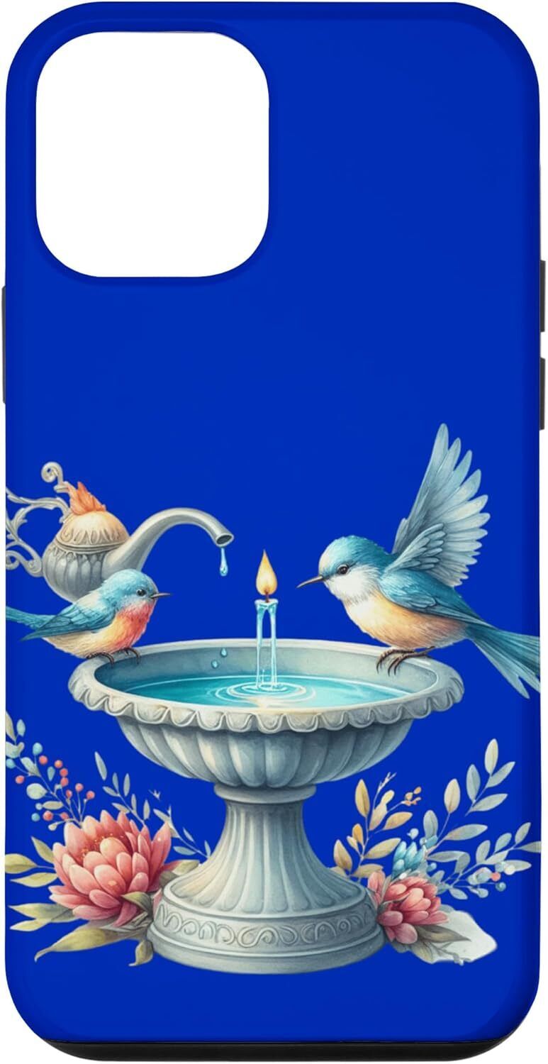 iPhone 12 mini Bird Blue Bath Water Fountain Spring Floral Tea Pot Bird Case