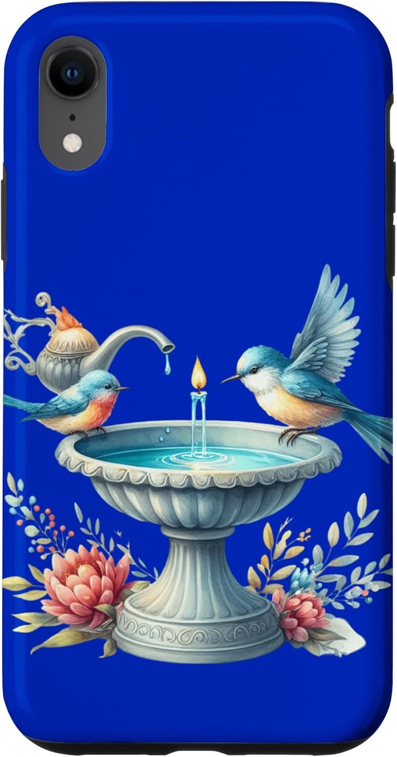iPhone XR Bird Blue Bath Water Fountain Spring Floral Tea Pot Bird Case