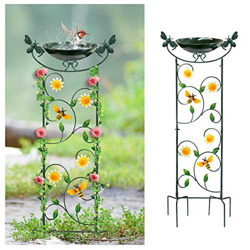 HONGLAND Trellis Bird Baths for Outdoors, 40 Inch Height Garden Plant Trellis Bird Feeders, Backyard Vintage Decor, Bird Bath Bowl Can be Paired Solar Fountain Pump, Yard Decorations Bee