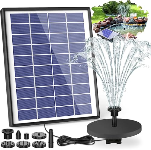 Eieenotee 3.5W Solar Fountain Pump for Bird Baths, Free Standing and Floating with 6 Customizable Nozzles