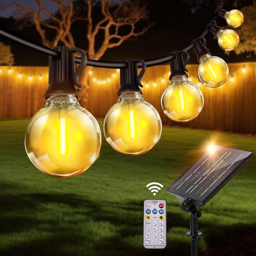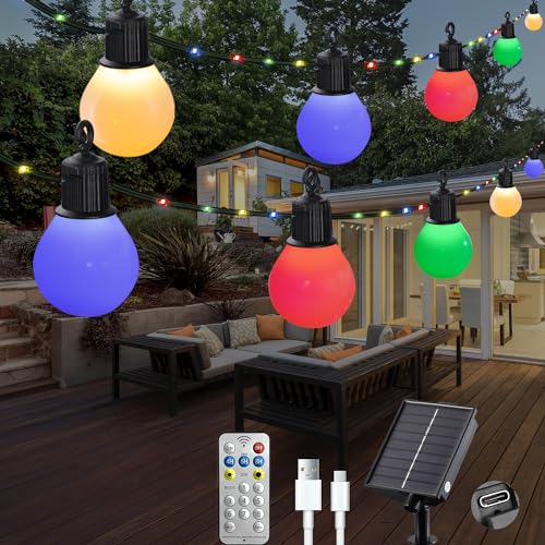 FIBRAVE G40 Solar String Lights Outdoor with Remote 40 FT, USB &Solar Dual Charging, Waterproof, 8 Modes 3 Timers, LED Shatterproof Bulbs Light for Camping Backyard Bistro Porch Garden